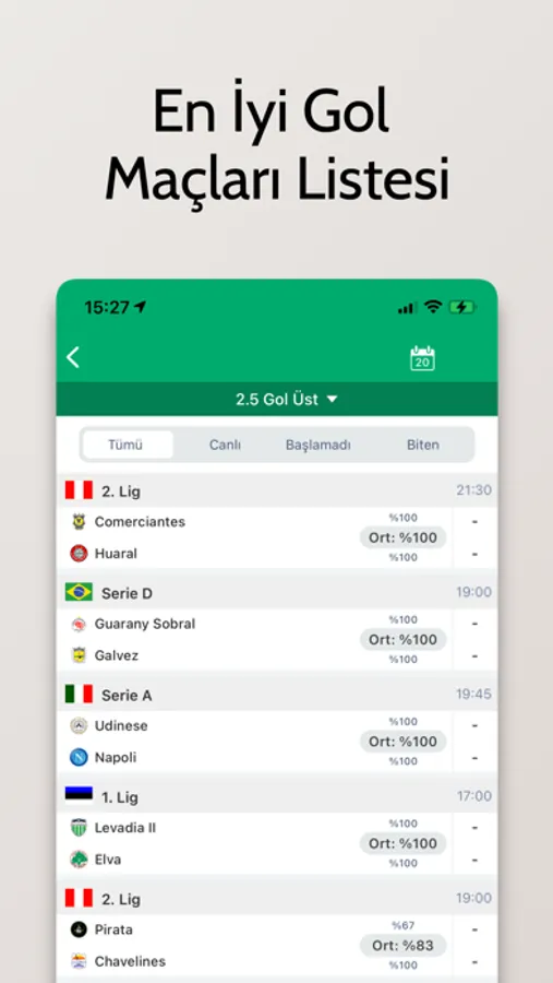 Ayrıca akıllı canlı tahmin sistemi ile canlı oynanan maçlar için tahminler üretir.