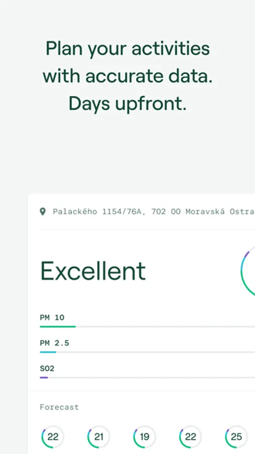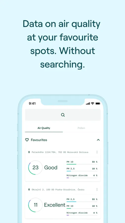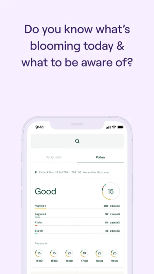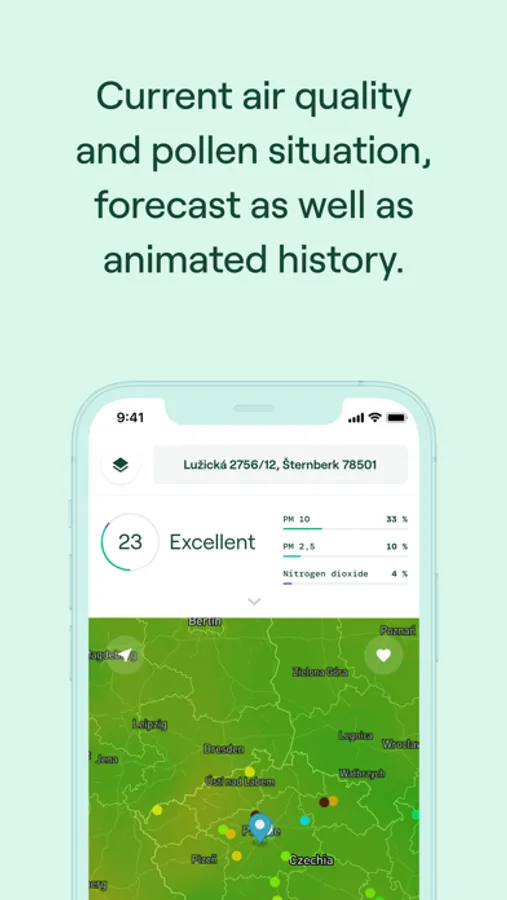 Air quality index informs you about real time air quality including particulate matter PM2,5, PM10, NO2 and SO2. With one click you switch to the display of pollen index and current pollen situation. We monitor birch pollen, ambrosia, grass, alder and sage pollen. Respond in a timely and adequate manner to changes and poor air quality thanks to smart notifications on your mobile.