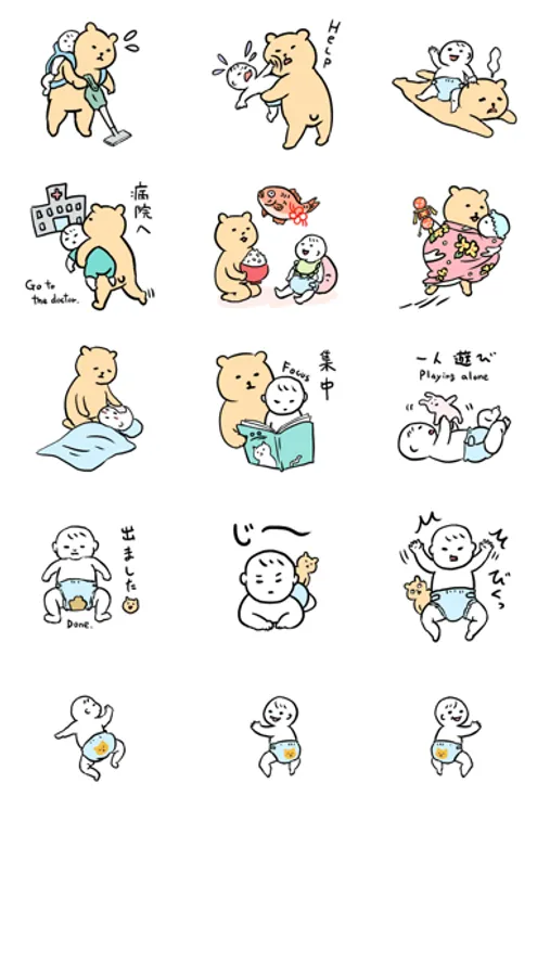 The popular cute bear is now struggling with childcare! Stickers for everyday childcare! Whether you're having fun or feeling blue, the bears are with you! A total of 32 kinds of bear stickers.