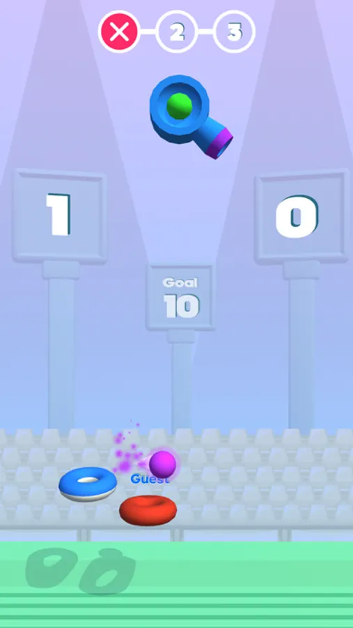 Move your hoop by pressing down and sliding the hoop. Let go to push the hoop up. Get the ball through your hoop before your opponent does to score. Get 10 to win a round. Win 3 rounds to win the game. A fun multiplayer experience!