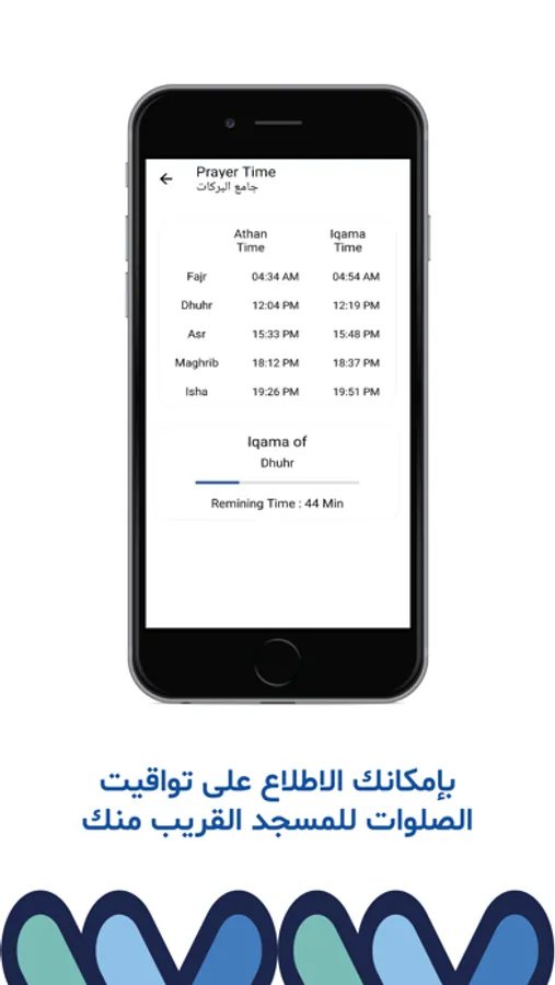 تجربة جديدة ولأول مرة في عالم الهواتف النقالة تصنع الفارق في صياغة أدوات إدارة الوقت، ما يستطيع فعله أي تطبيق آخر تطبيق وقتك إدارة أوقات الصلوات بطريقة فريدة يصلك بالمسجد ليتيح لك معرفة أوقات الإلقامة من الإلمام مباشرة، بالإضافة لتلقي الإلشعارات من الإلمام لمعرفة كل ما هو جديد من فعاليات إيمانية تقام بالمسجد، كما يقوم التطبيق بأكثر من ذلك