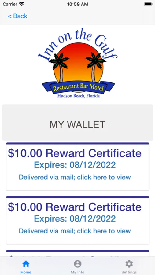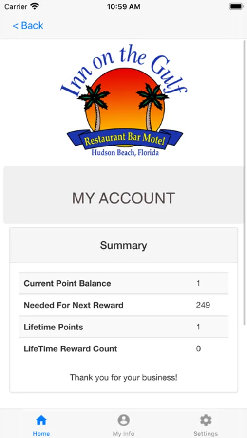 The Inn on the Gulf Loyalty mobile app delivers offers and loyalty information to on-the-go customers, giving quick access to exclusive deals, enrollment options, loyalty point balance and rewards lookup, loyalty program information, and information about our business-