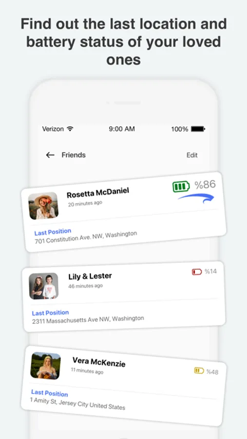 -See the battery percentages of your loved ones in real time and get notifications when they reach critical levels.