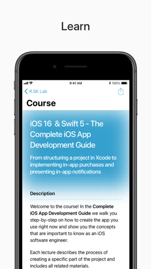In the Complete iOS App Development Guide we walk you step-by-step on how to create the app you see right now and show you the concepts that are important to know as an iOS software engineer.