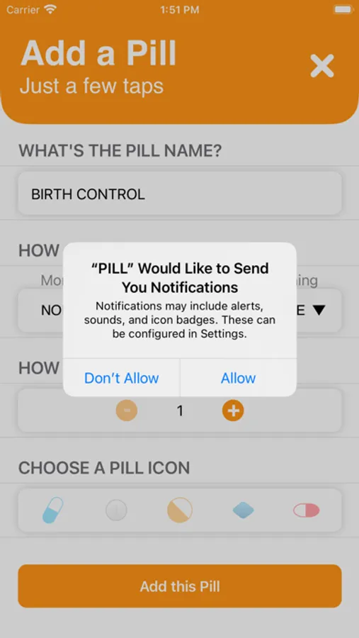 - Customize your pills with a cool icon.