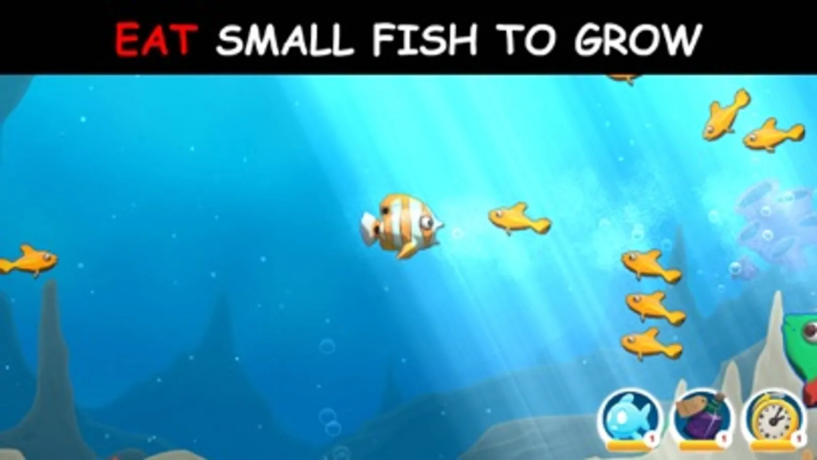 Track the growth of fish. Eat all the little fish around and the player's size increases. The growth bar at the top of the screen will indicate when you will be ready to eat larger fish.