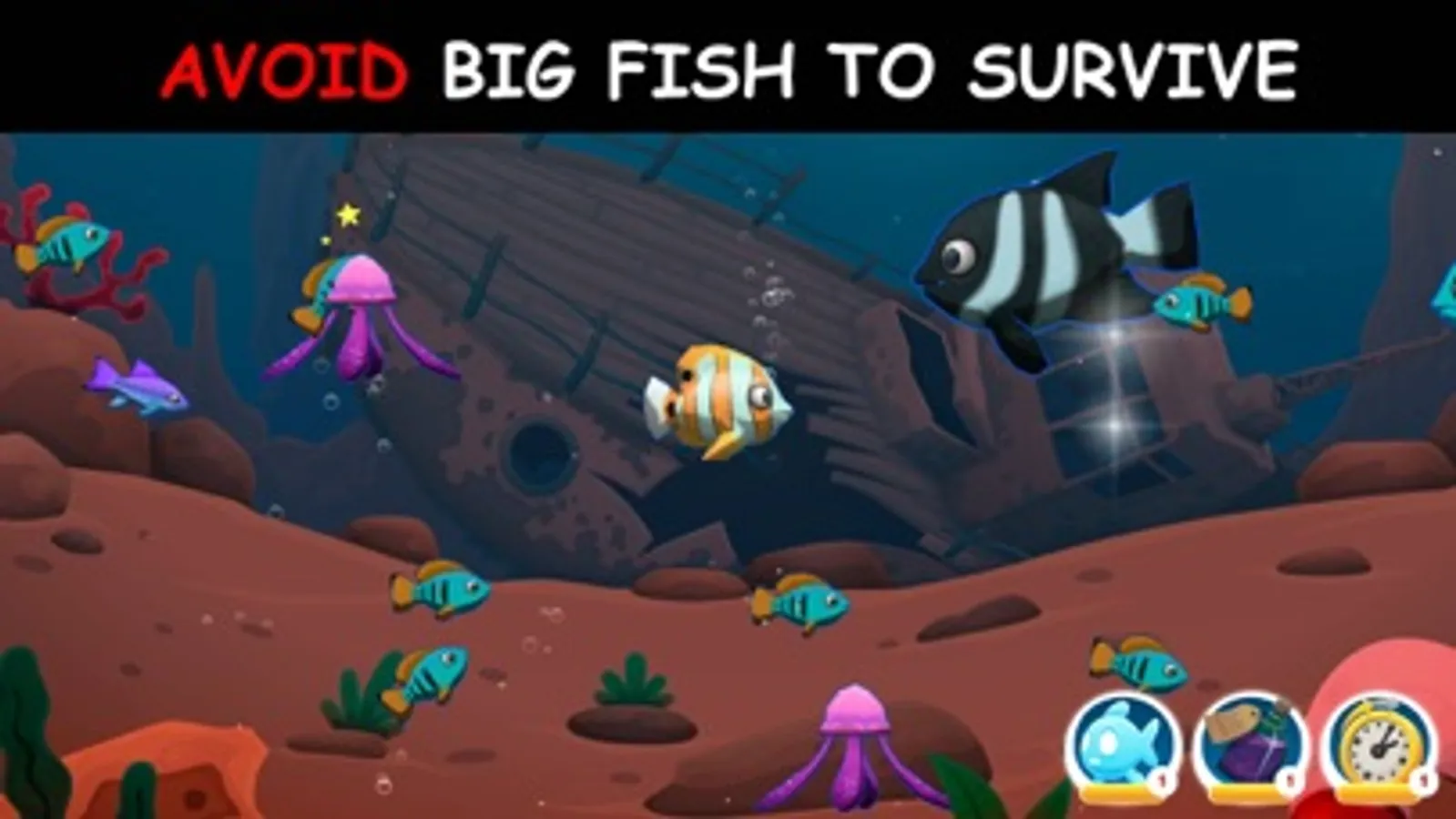 Eating shoal of small fish, evolve and fall into feeding fishy frenzy. Stay afloat for as long as possible, devouring all the weaker sea animals in your path! Remember, not only your goldfish is trying to grow, evolution and taking over the world by eating their own kind! Start ocean survive: feed and grow fish now!