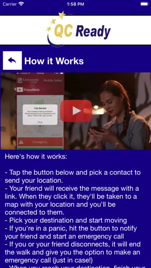 - Friend Walk: Send your location to a friend through email or SMS on your device. Once the friend accepts the Friend Walk request, the user picks their destination and their friend tracks their location in real time; they can keep an eye on them to make sure they make it safely to their destination.