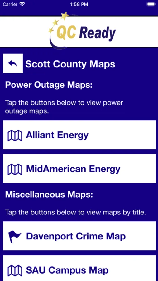 QC Ready is the official safety app of the Rock Island County and Scott County Emergency Management Agencies (EMA). The app will send you important safety alerts and provide instant access to local safety resources.