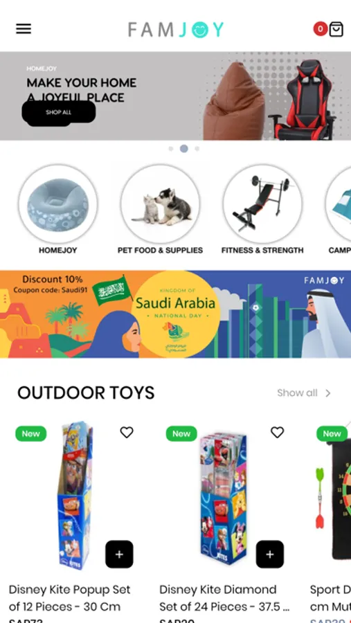 FamJoy is a Saudi-established company focused on bringing joy and happiness to families. We are targeting your family’s entertainment in and out of your home. We provide a secure platform with a wide selection of products for you, your loved ones, and your four-legged friends.