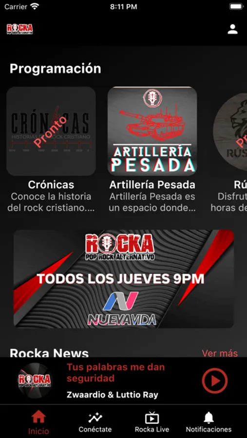 Música en español e inglés de bandas locales e internacionales con un mensaje cristocentrico.
