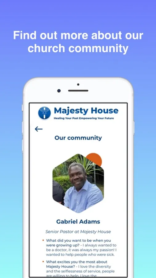 Majesty House is a lively, international church and caring community seeking to grow in our knowledge of Jesus. Our vision is both local and global. We meet physically in Southampton, UK, as well as online so you can join us from wherever you are.