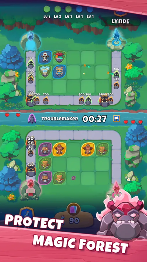 Random Totem—Tower Defense PvP is challenging in a good way. Would you like to form a multiplayer alliance? Or better destroy the enemy in one-on-one strategy? Anyway, you'll have to thorough calculate your actions to win! You probably will be gaming out different td scenarios, wisely deciding whether to upgrade and level-up your totems. Be ready to make tough decisions! Even though every totem is placed entirely random, the result of the game is not just on the roll of a dice!