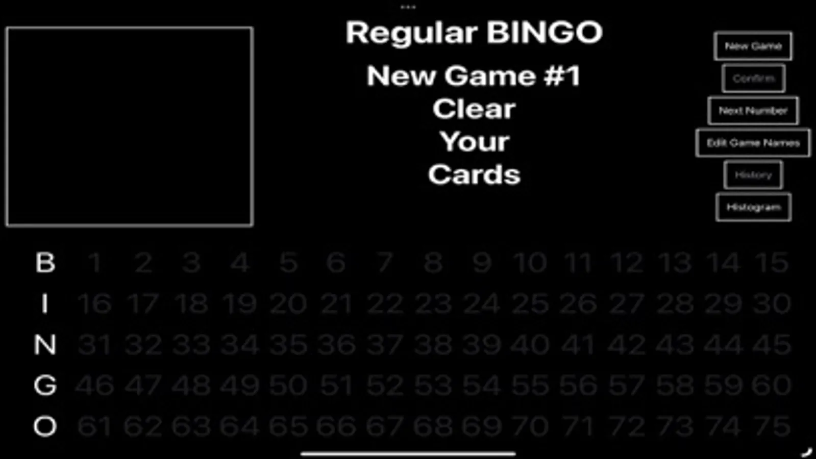 Bingo Numbers are easily generated and displayed in white on black or black on white by changing Settings>Display & Brightness>Light or Dark Mode. Numbers can now be selected by tapping the number. A list of past numbers is displayed and highlights the four previous numbers. Screens for a histogram and history of the numbers are generated have been added to shows the bias towards a particular random number. Go B.I.N.G.O!