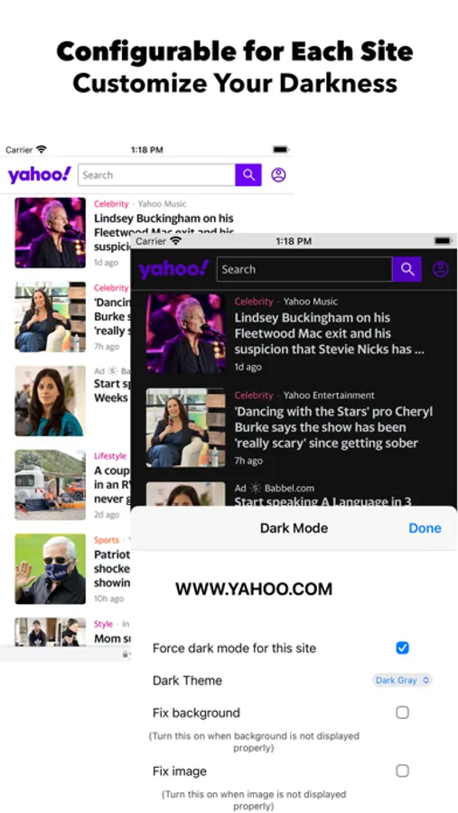 It also supports configuration for each web site. You can determine how to convert into dark mode for each site.
