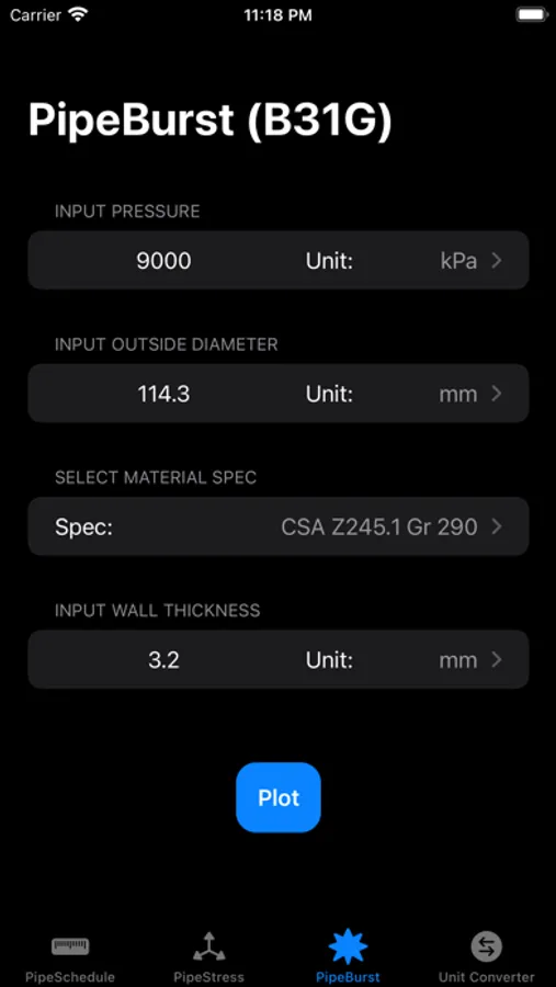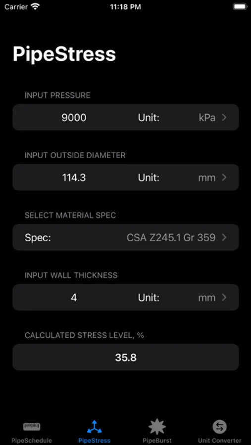 Piping hoop stress calculator. Module includes a list of the most common material specifications.