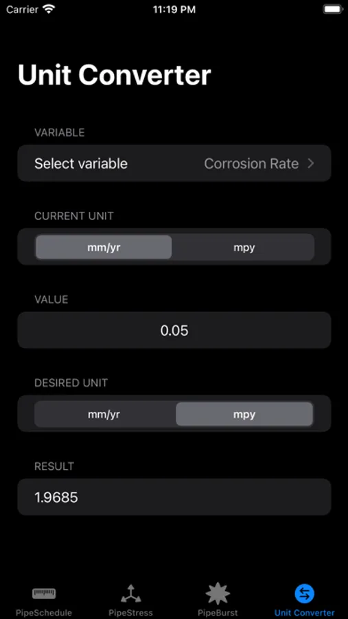 Includes conversion of the most common units in Asset Integrity: Pressure, Temperature, Length and Corrosion Rate.