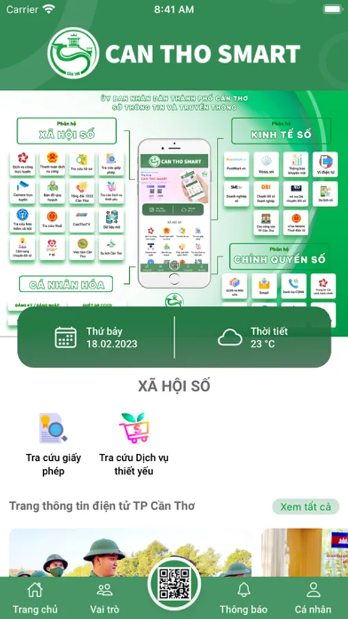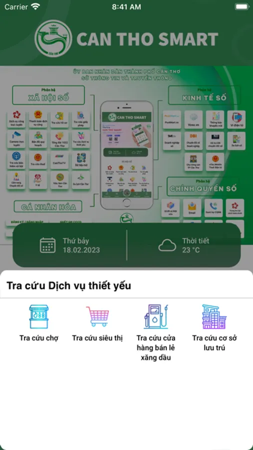 Ứng dụng mobile Cần Thơ CDS cung cấp các chức năng như: