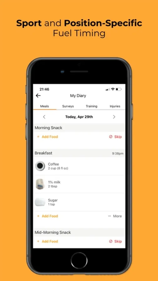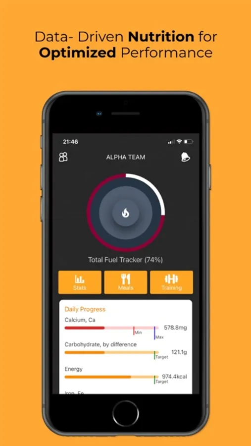 The mobile app is our data collection and engagement tool in the hands of athletes, giving an accurate and comprehensive picture of health and nutrition status as it relates to their sport, position, and individual energy expenditure demands.