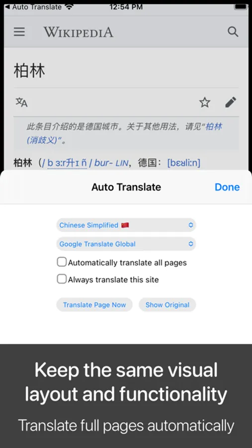 Navigate the web and translate the entire page in your preferred language (automatically after page load or manually only when you want to) - that's it.