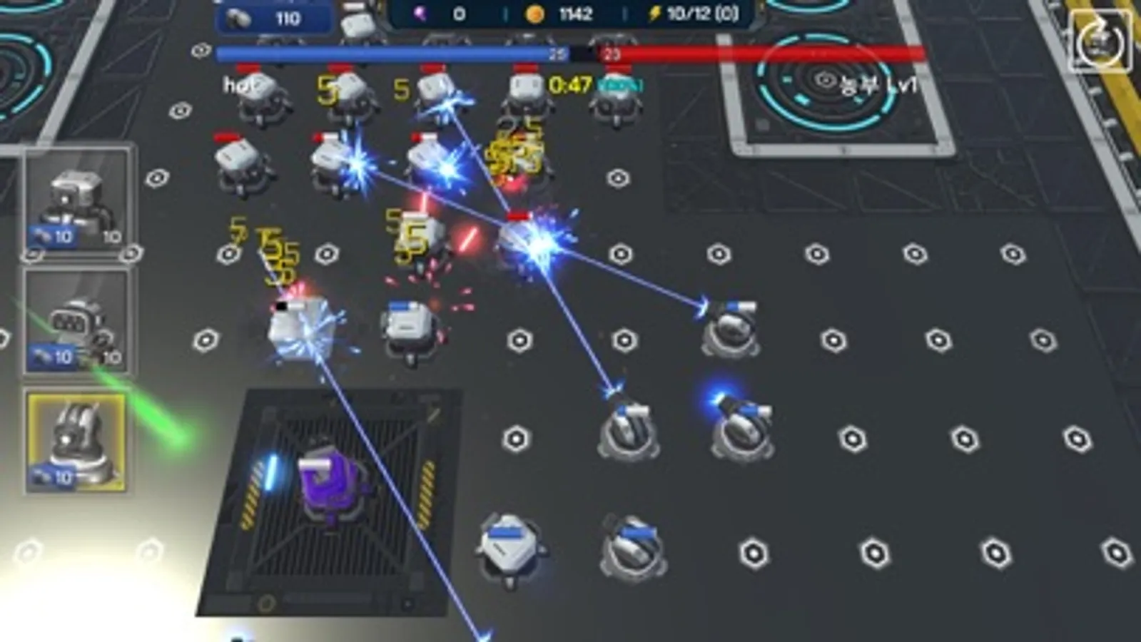 전략적으로 진행하는 1 vs 1 모바일 멀티플레이 평행 포탑 전투!