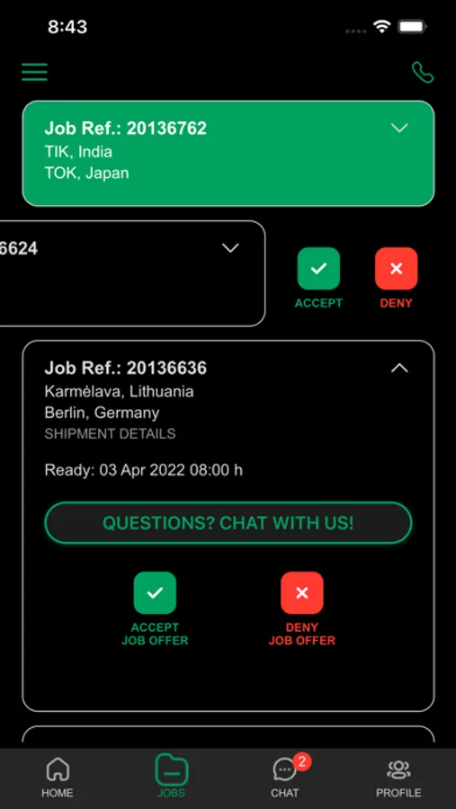 But that isn’t all: If a job confirms for you, nearly the whole handling will be transferred into the app. The core function will be our own chat that lets you directly get in touch with our ops team!