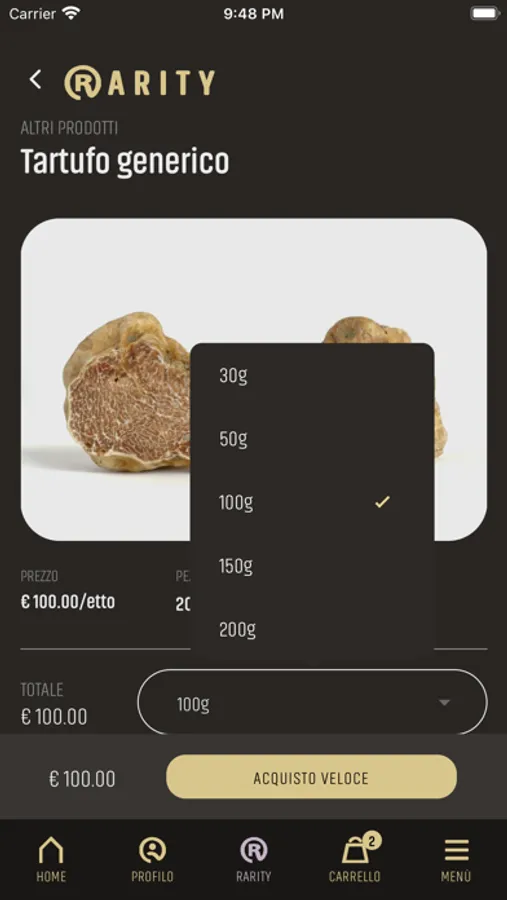 Rarity is an app to find and buy very fresh Alba truffles, white or black, in a unique way. The app allows you to view freshly picked truffles and receive them at home in no time, but that's not all! It is possible to follow each step of the truffle you choose: