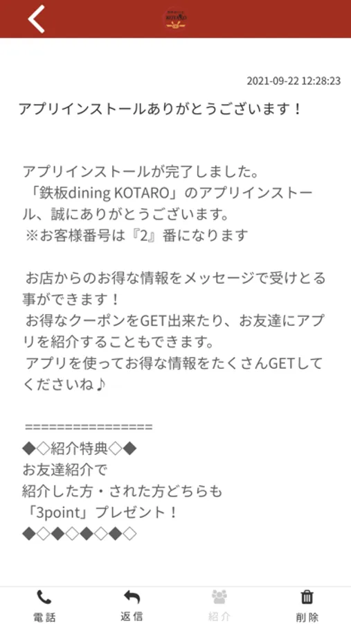 KOTAROのアプリをSNSを通じてお友達に紹介する事ができます。