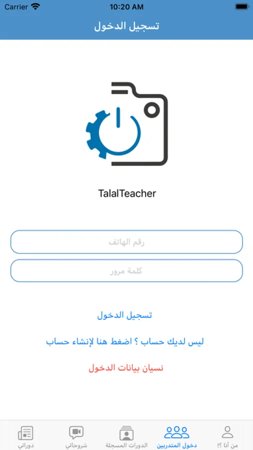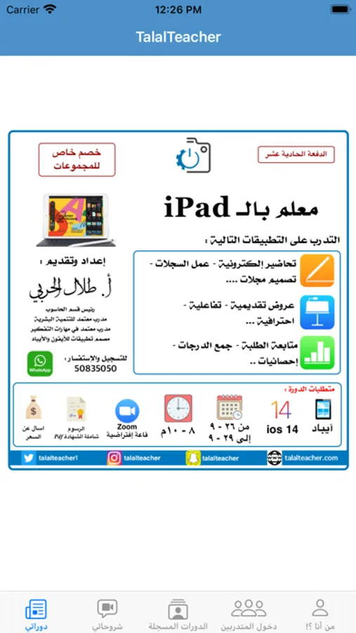 - يحتوي على شاشة لدخول المتدربيين الذين قد سبق لهم التسجيل في دواراتنا .