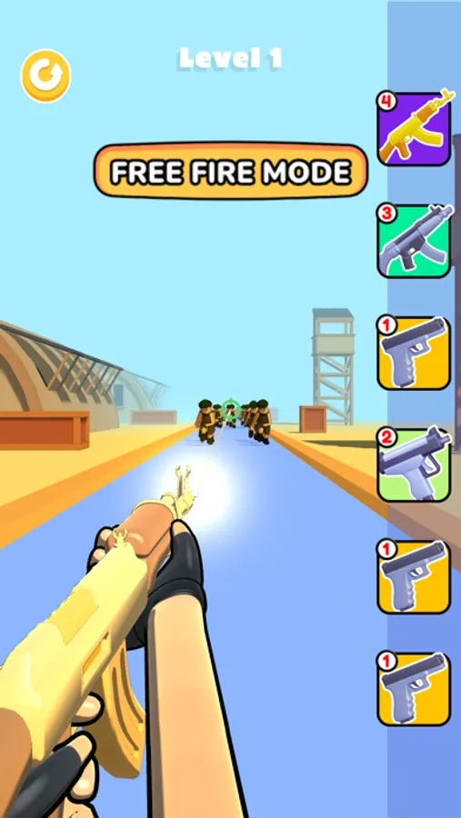 Ready for a fun game? Try to merge weapons as much as you can and upgrade to powerful guns. Shooting with these guns is super fun! Watch out for the enemies coming towards you! Have fun!
