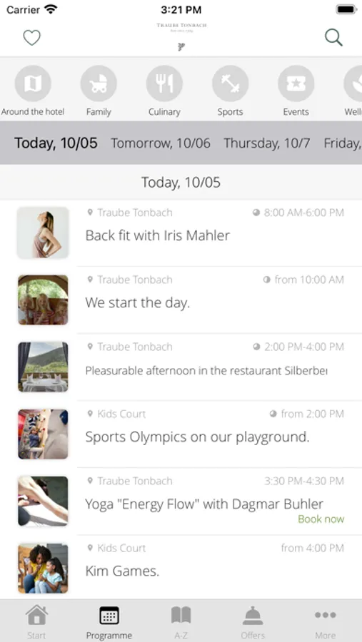 Enjoy with your family exquisite service and world-class cuisine as well as our wellness offers and the beauty of the Black Forest. The Traube Tonbach App accompanies you during your stay, informs you about current events in addition to exciting offers and gives you further helpful tips and hints. Filter by different interests such as culinary, wellness, family or experiences and put together your own program from our activities. In addition, you will find all hotel information and important phone numbers.