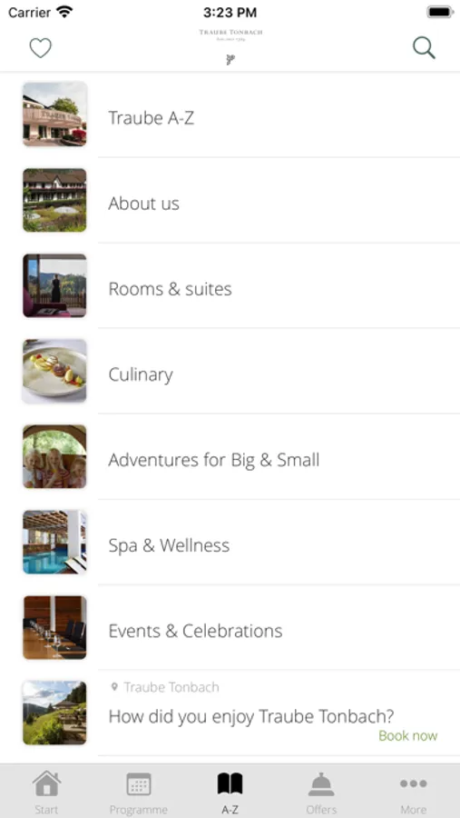 World-class culinary delights! With us, you can expect indulgence that is second to none. The menu of our three Michelin-starred Schwarzwaldstube, our one Michelin-starred Köhlerstube and all other restaurants are digitally stored in the Traube Tonbach app. If you want to do something good for yourself and be pampered from head to toe, then you are in the best hands with us. In our spa menu you will find special offers and soothing treatments such as massages and much more. Important standard information about the Traube Tonbach, such as location and directions as well as opening hours of the restaurants, are prepared for you in the app. To help you find your way around, you can use the app to quickly find all the places and facilities in the hotel and its surroundings.