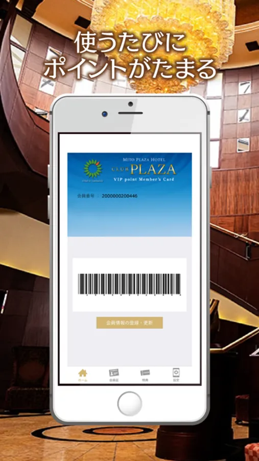 アプリのインストール後に本登録を完了してください。本登録によりクラブ プラザ会員証を表示できます。
