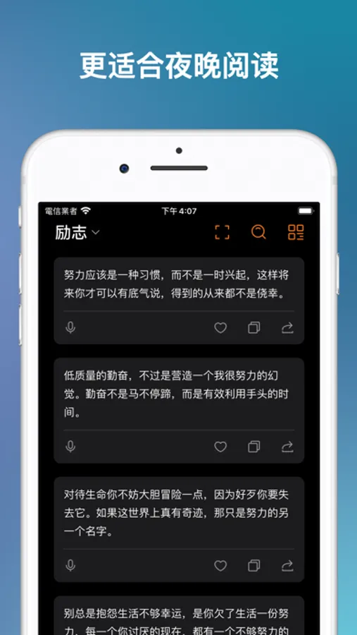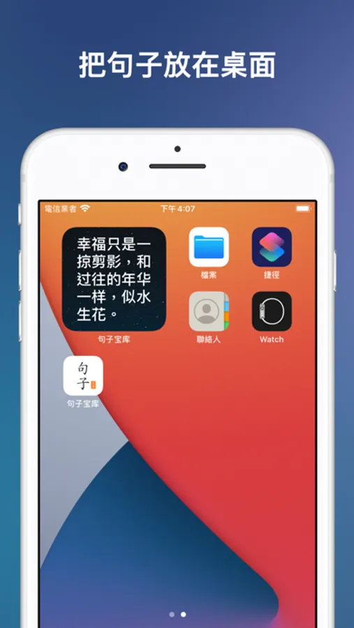 句子宝库是一款以极简和专注为核心理念的句子应用,去除了繁琐的交互,重点突出句子内容。同时支持多种主题,让你可以沉浸在句子的海洋。同时还支持收藏、分享、小组件等功能。