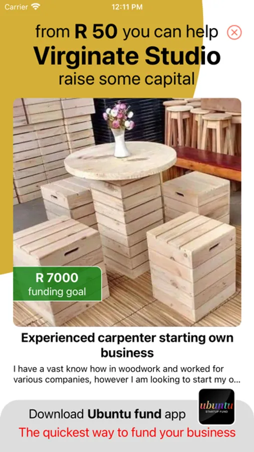 Ubuntu startup fund brings the age old African tradition of crowdfunding known as Stokvel into a mobile app. A business networking social platform that brings like minded people together.