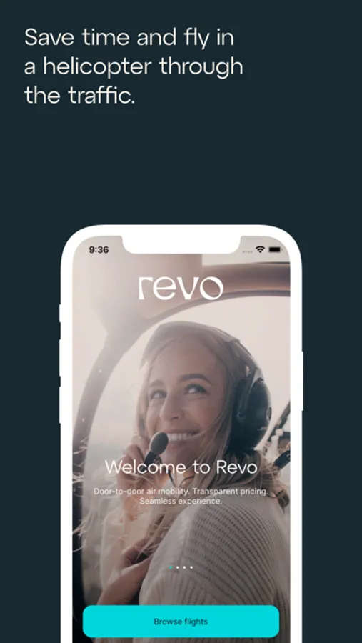 With Revo, what takes hours by car can take minutes. Just open the app, enter your destination, book your flight and enjoy the experience.
