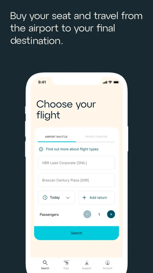 Search, book and pay for your seat in the airport helicopter shuttle or private charter flights. Manage everything in one place, including any extras, such as additional luggage and ground transport to your final destination.