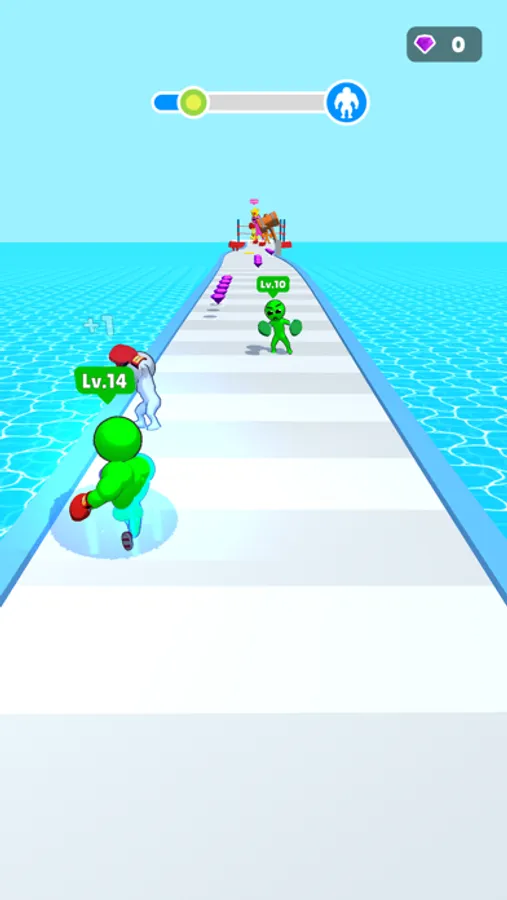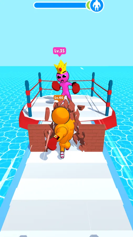 The path is long, many enemies stand in your path. But all obstacles only serve to make you stronger! Charge straight into your enemies, punch them in their dumb faces and watch your muscles swell with new power. Keep going, keep punching, keep winning, keep growing, until you reach the Boss, the King, at the end of the level… he's the strongest of them all, to be able to beat him you'll need to have beaten all who came before him. You'll only get one shot, can you knock the crown from his head?