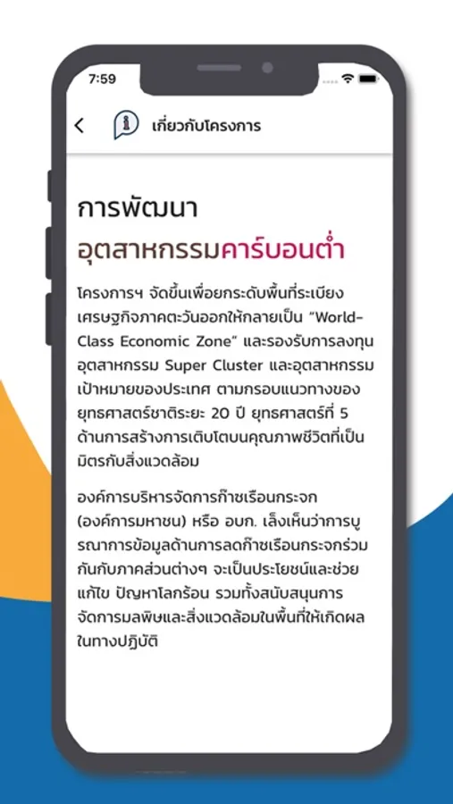 Project is established to promote the Eastern Economic Corridor to become the "World-Class Economic Zone" and to Support industrial investment of super cluster and target industries of Thailand as indicated in the 20-year national strategy (the 5th strategic plan: building quality
