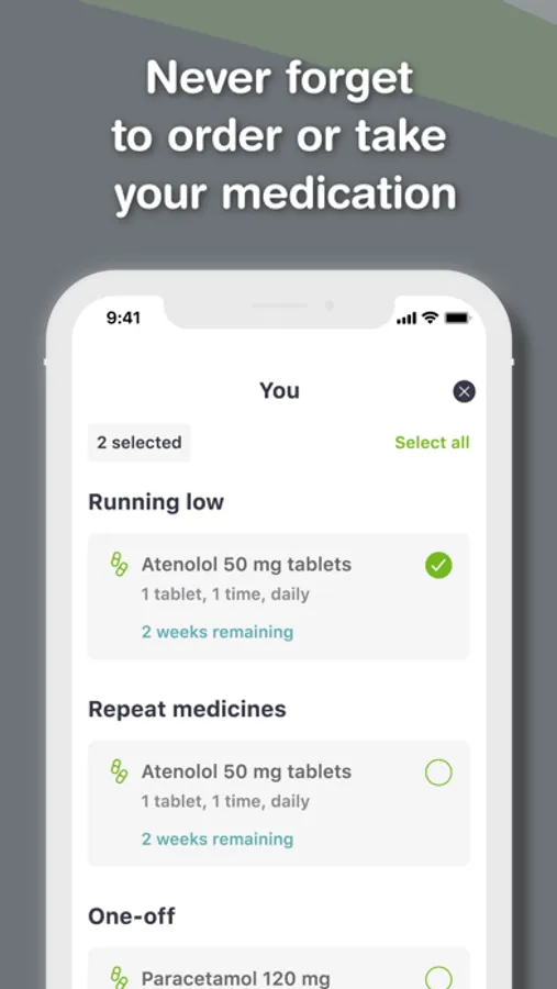 Get a medication reminder with our medicine tracker and know when it’s time to order a repeat prescription.