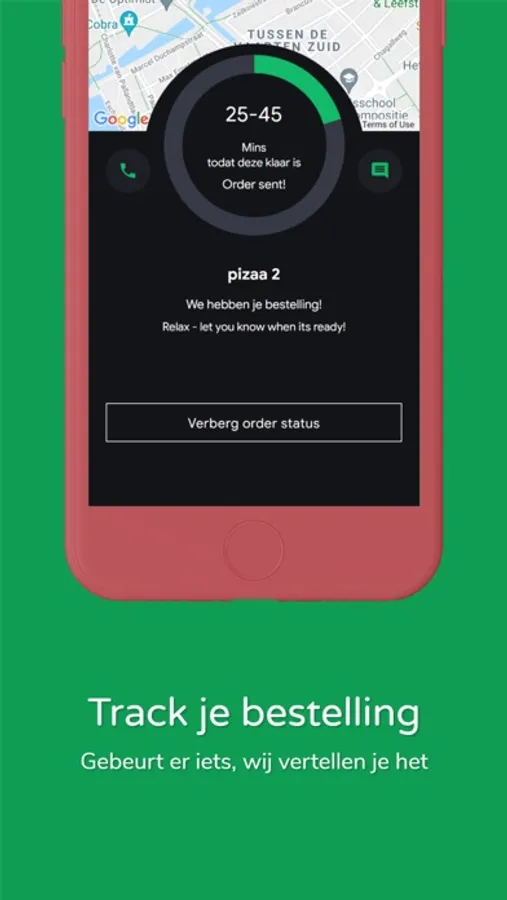 Wacht tot je de push berichten over de status van je bestelling ontvangt.