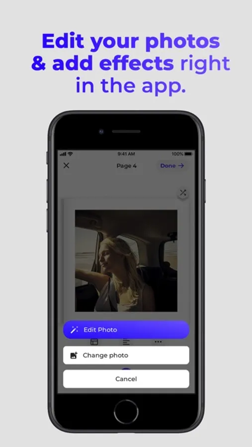 It's never been easier. Select your favorite photos straight from your phone, the cloud or your social media accounts. Arrange them easily to your liking, edit them, add filters, text and more. Getting started is easy, and you have full control over the look and feel of your book. Once you are done, we'll print your book, bind it and hand it off to be delivered anywhere in the world.
