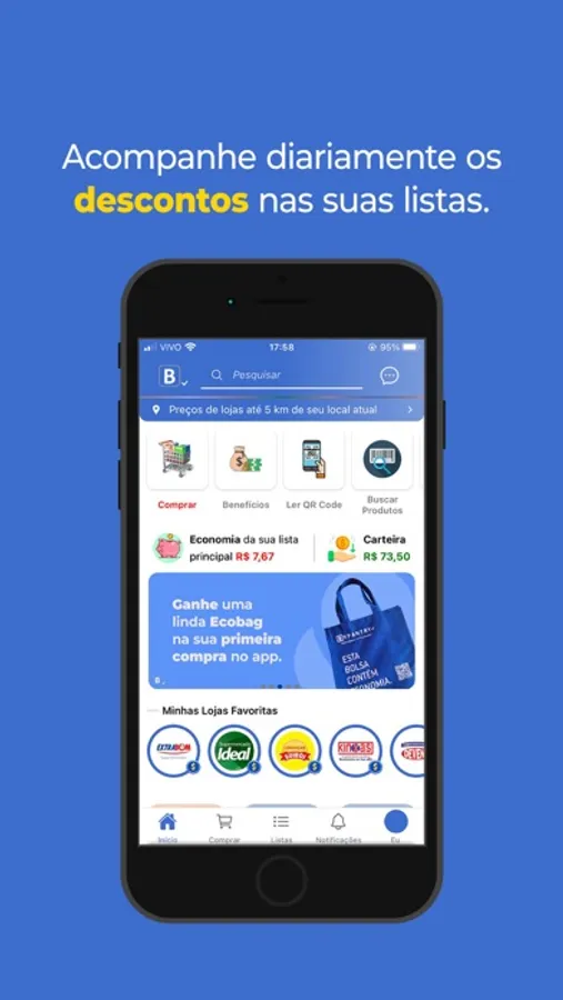 Cadastrando seus cupons fiscais, avaliando produtos e indicando amigos, você ainda ganha pontos que são convertidos em descontos para abater em suas próximas compras realizadas dentro do aplicativo*. Demais, né?