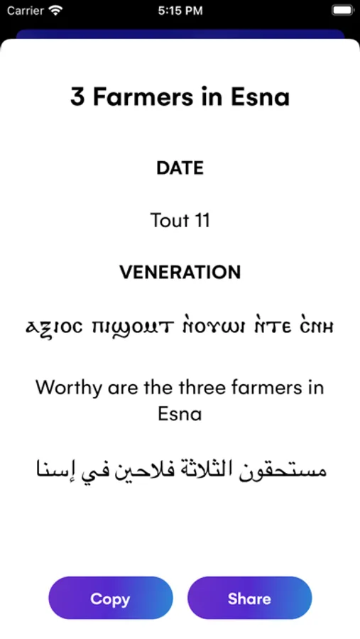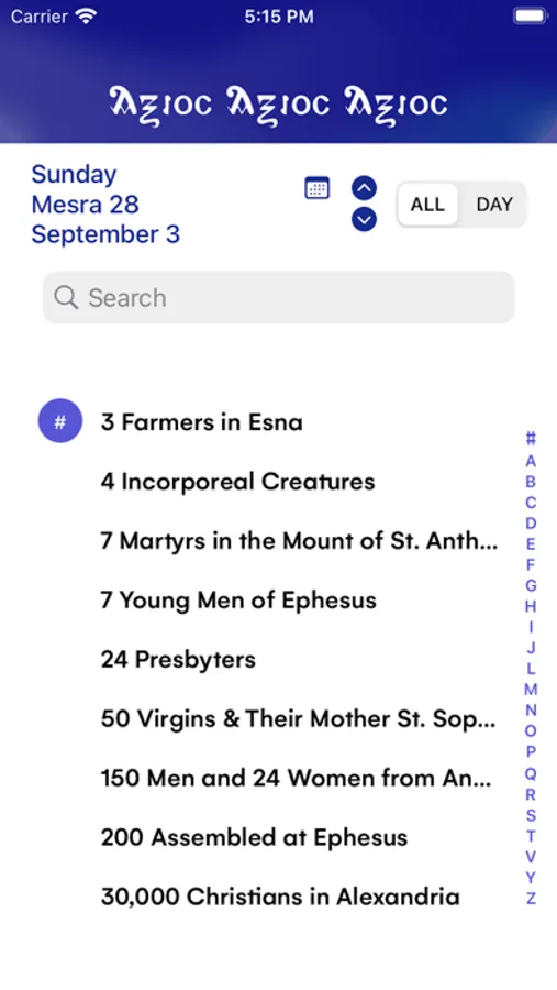 Axios, meaning "worthy of" or "deserving of", is an acclamation used in the Coptic Orthodox Church to venerate the Saints. The Axios app allows you to look up saints from the Synexarium and display the veneration responses.