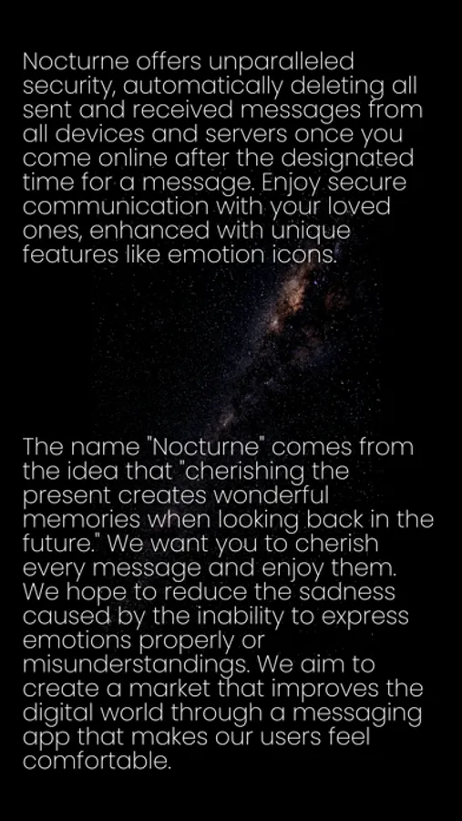 In Arc, messages automatically disappear from all devices and servers after a specified period. Our "Ignite the Fire" philosophy sparks free and heartwarming communication, untethered from digital records. It's our wish for you to cherish every single conversation.