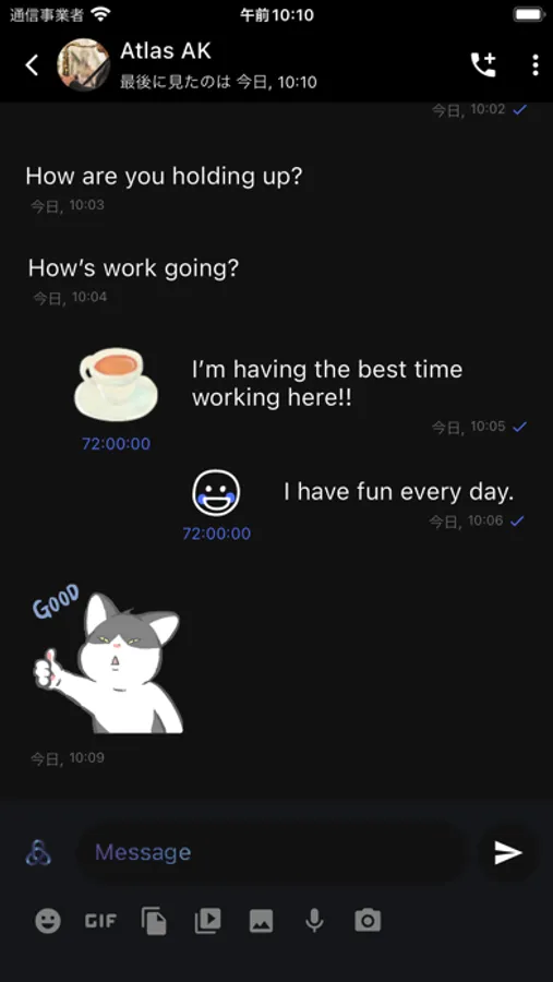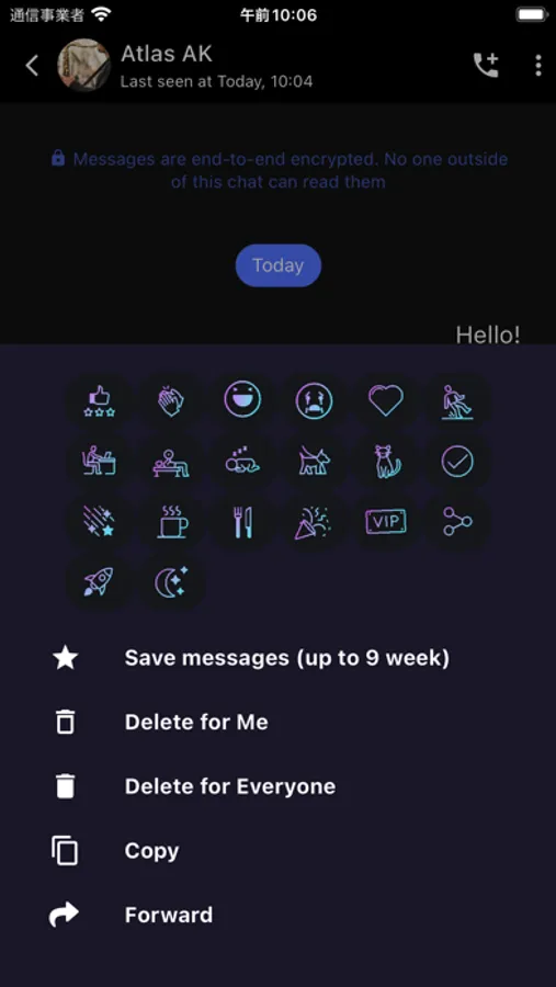 As a unique feature, communication with emotional icons attached to messages is possible.