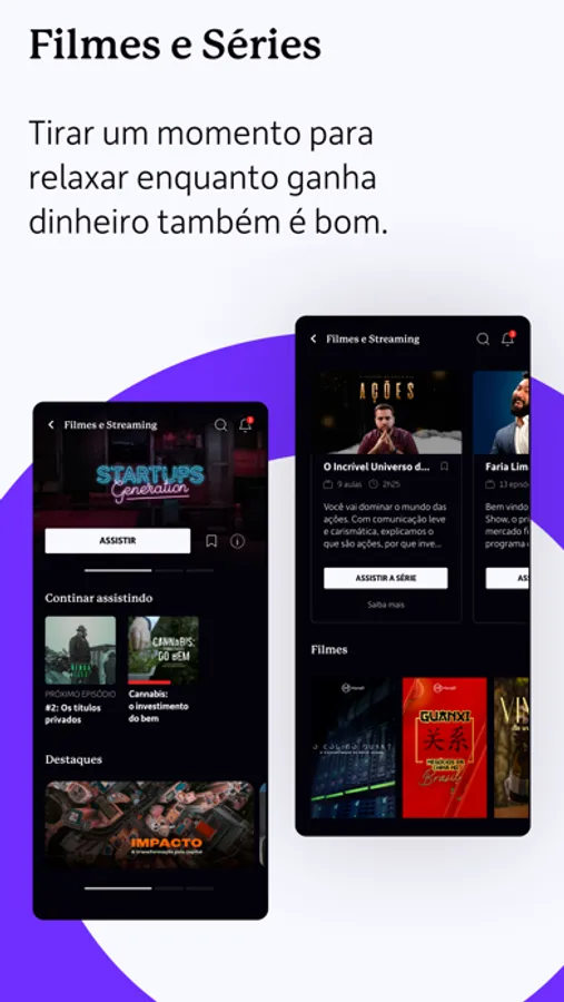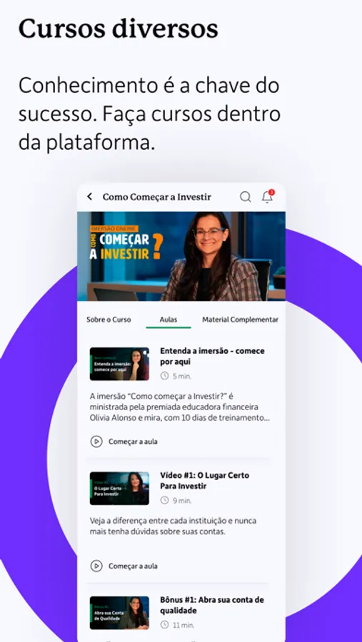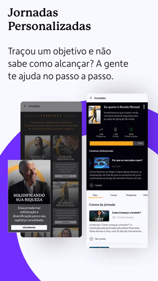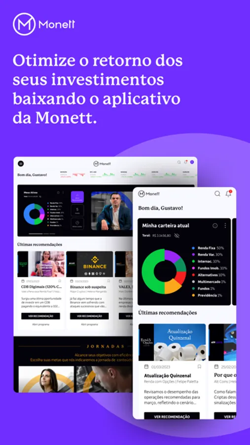 A Monett é uma plataforma de conteúdos e controle dos seus investimentos de forma personalizada. Desde carteiras recomendadas, até cursos e vídeos de entretenimento, você personaliza sua jornada e acompanha seus investimentos com visões estratégicas e organizadas.