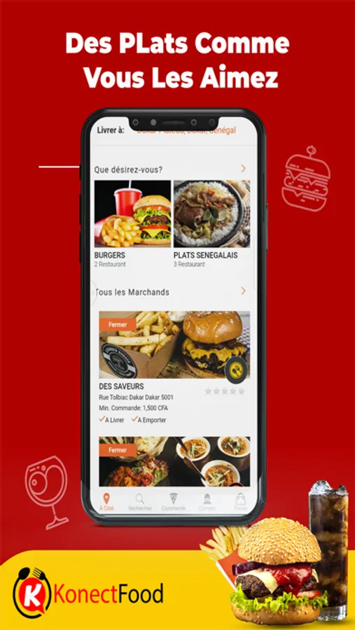 KonectFood la première plateforme de livraison de repas, boissons, desserts et produits de supermarché et pharmacie, utilisée au Sénégal.