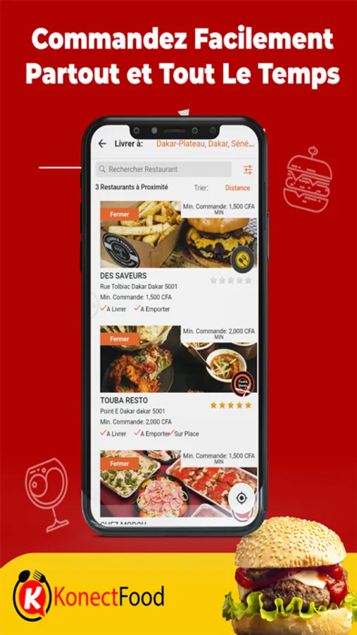 KonectFood vous simplifie la vie avec l'une des applications de livraison de nourriture les plus populaires au Sénégal.