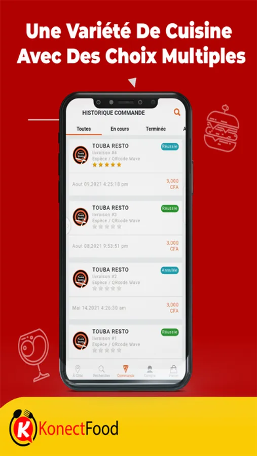 Téléchargez et commandez facilement sur KonectFood et recevez vos plats préférés des restaurants les plus chics de la ville. En un clic faites vous livrez rapidement et jusqu'à chez vous.